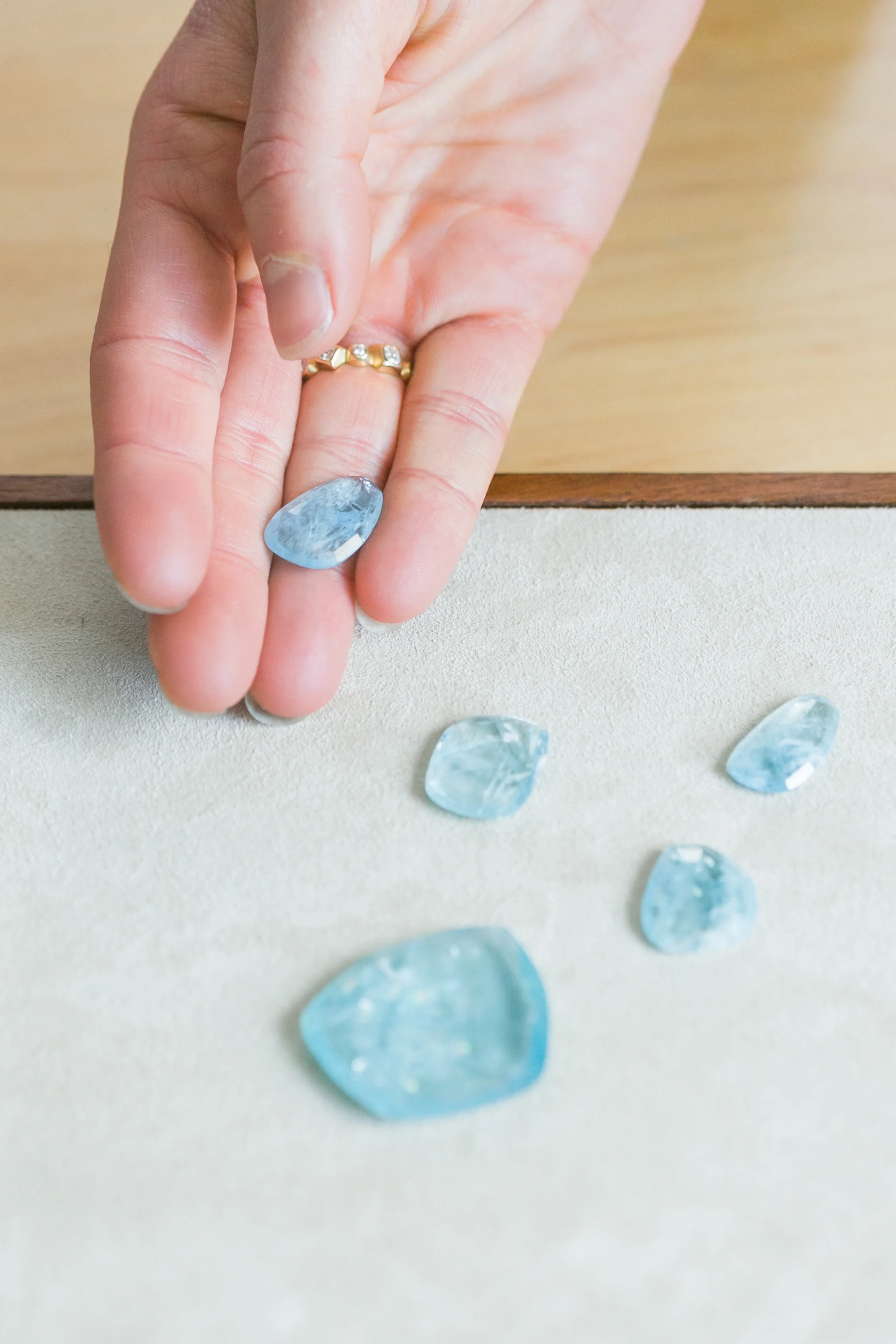 Our creative process starts with “Inspiration, Exploration, and Gem Selection”. Whether the inspiration originates with you or from within our own studio, we explore the idea together visually with gems.